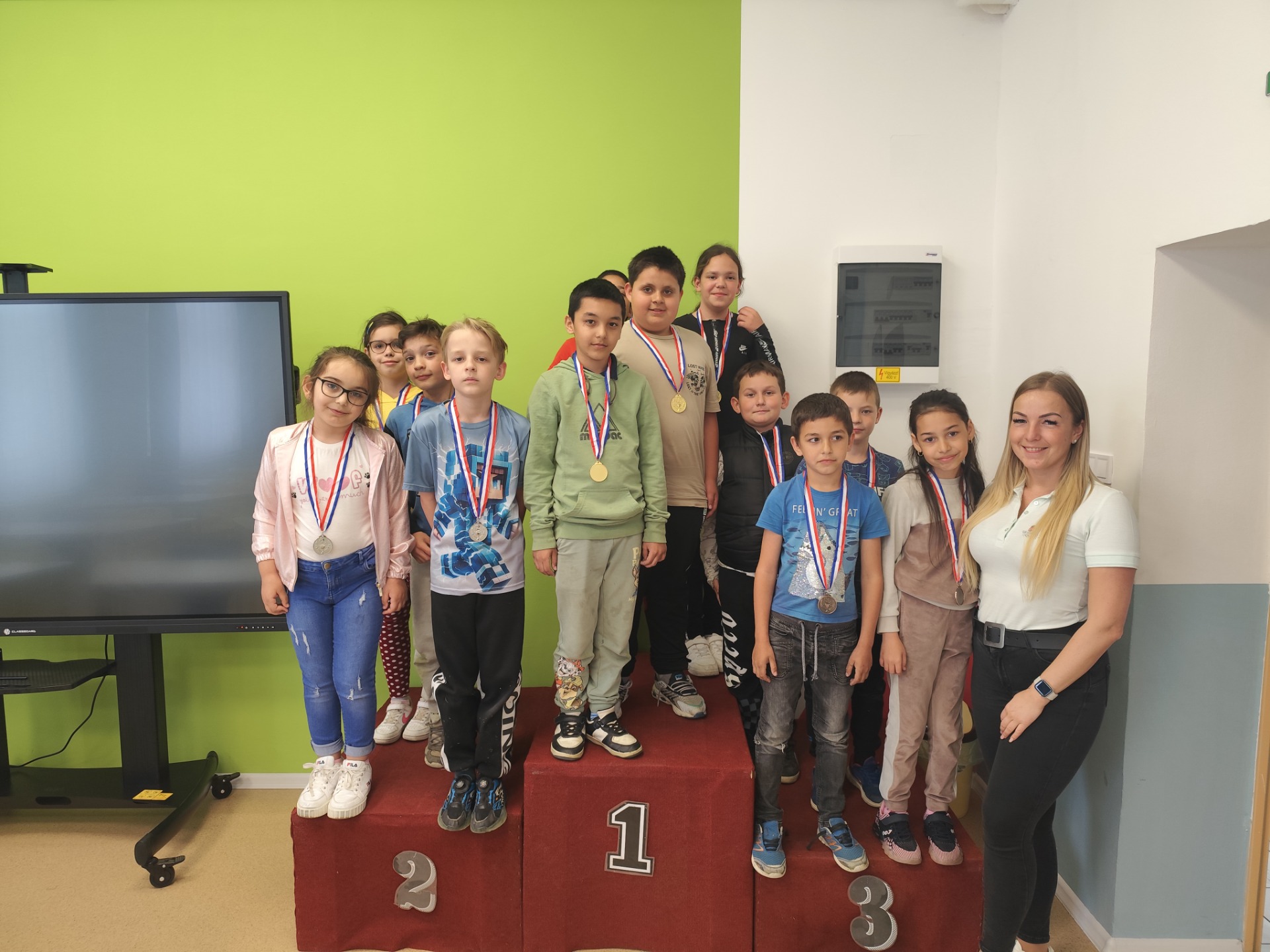 Tanulóink ismét ügyesen és motiváltan dolgoztak a bemutató órán. Munkájuk elismeréseként, a pontok összesítése után újra dobogóra álltak, és érmekkel a nyakukban énekeltük el közösen a Himnuszt.